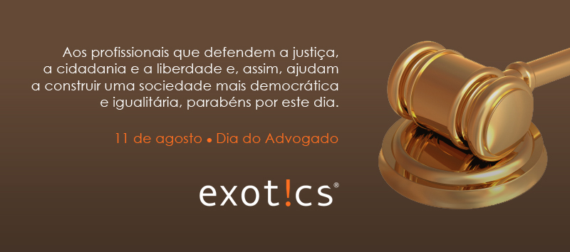 11 de agosto, Dia do Advogado Autor do post:Comunicação Exotics Post publicado:10/08/2012 Categoria do post:Uncategorized Você também pode gostar A evolução do logotipo da Exotics 27/10/2011 Pensar. Comer. Conservar 04/06/2013 Taxa de desemprego em Porto Alegre é a menor entre as capitais pesquisadas pelo IBGE 26/04/2013