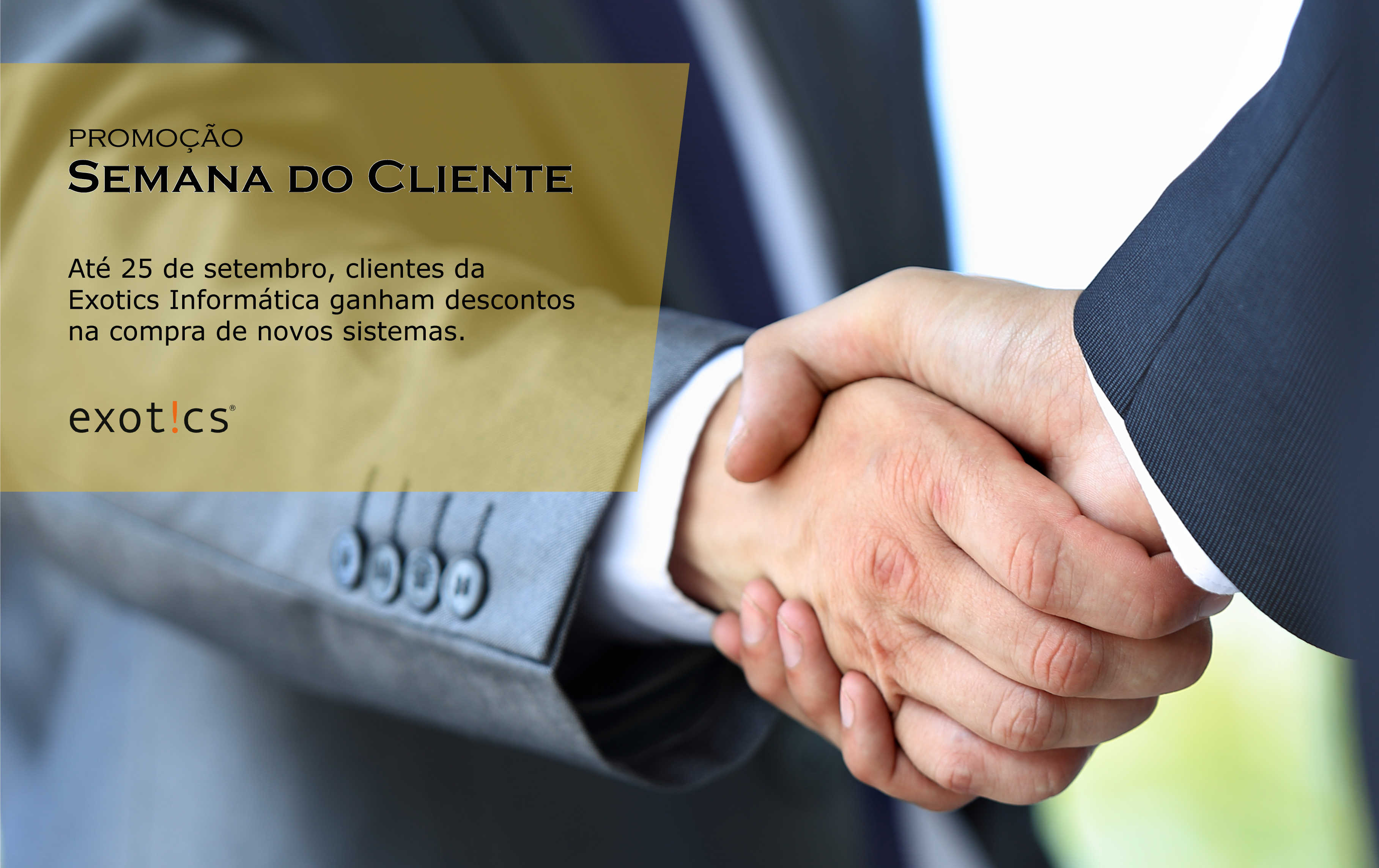 15 de setembro é Dia do Cliente e encontramos uma maneira para agradecer e homenagear os nossos: até 25 de setembro, clientes da Exotics Informática ganham descontos na aquisição de novos sistemas da empresa.