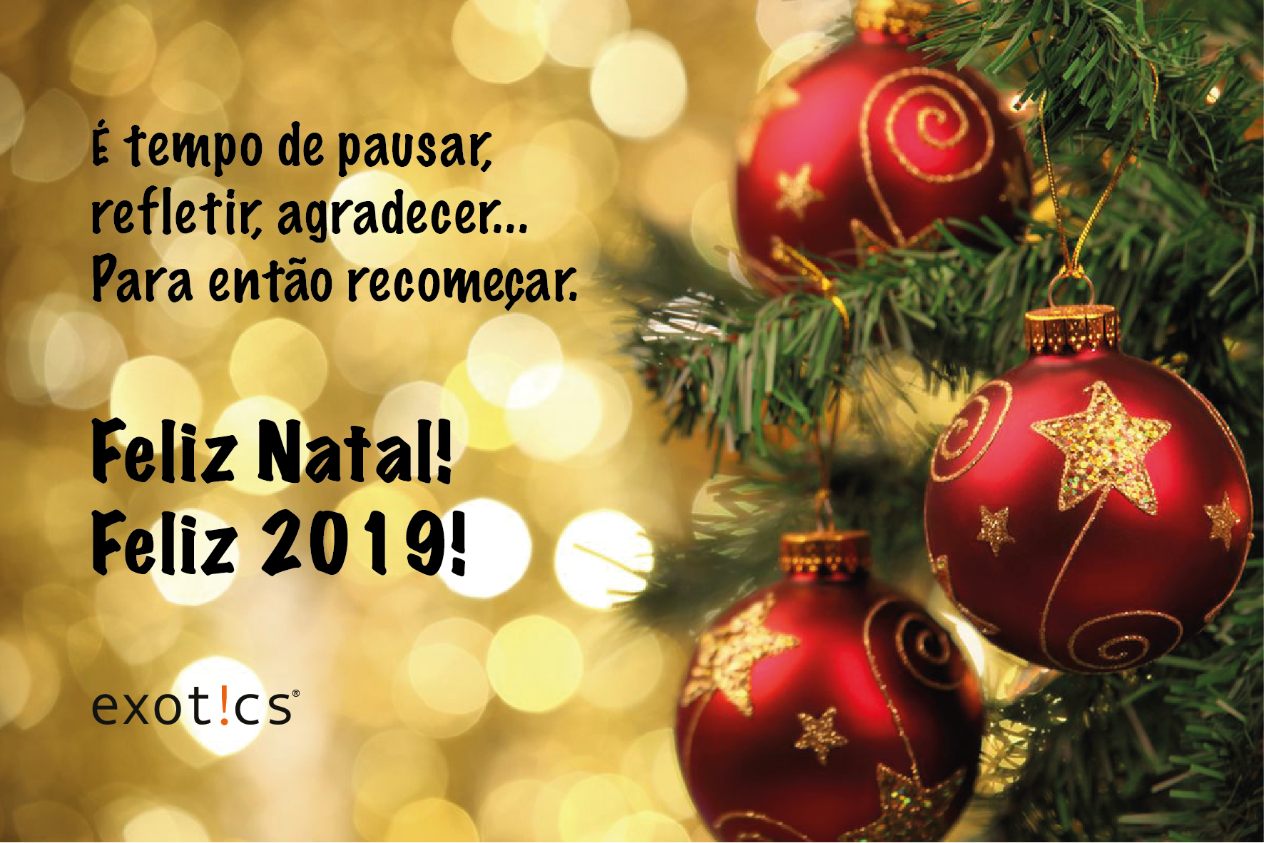 Boas festas! Autor do post:Comunicação Exotics Post publicado:20/12/2018 Categoria do post:Empresa / Geral Aproveitamos para agradecer a confiança de todos que estiveram conosco neste ano. Que nossa parceria se fortaleça em 2019! Boas festas! 🙂 Você também pode gostar Aviso de férias coletivas 19/12/2016 Feliz Páscoa 29/03/2018 Aviso: recesso de fim de ano 17/12/2024