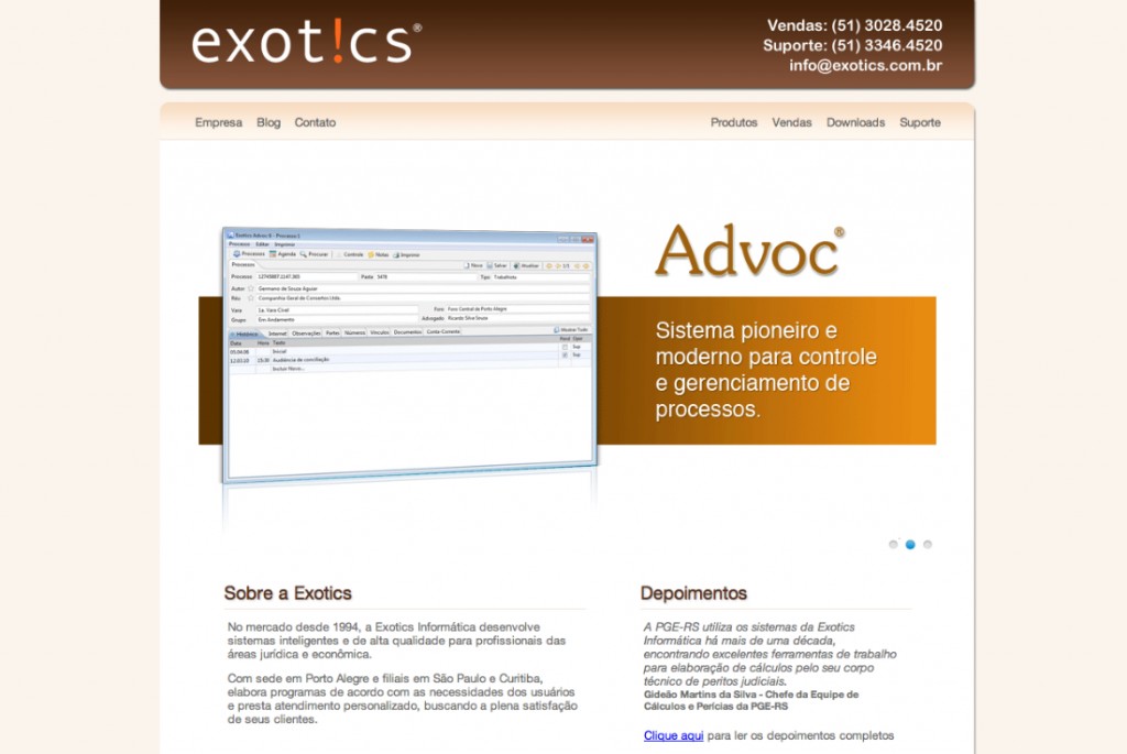 No ar: o novo site da Exotics