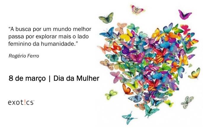 Feliz Dia da Mulher! Autor do post:Comunicação Exotics Post publicado:08/03/2015 Categoria do post:Geral Você também pode gostar Aos mestres, com carinho 15/10/2017 Parabéns, trabalhador! 30/04/2015 50 dicas de marketing para advogados 21/05/2014