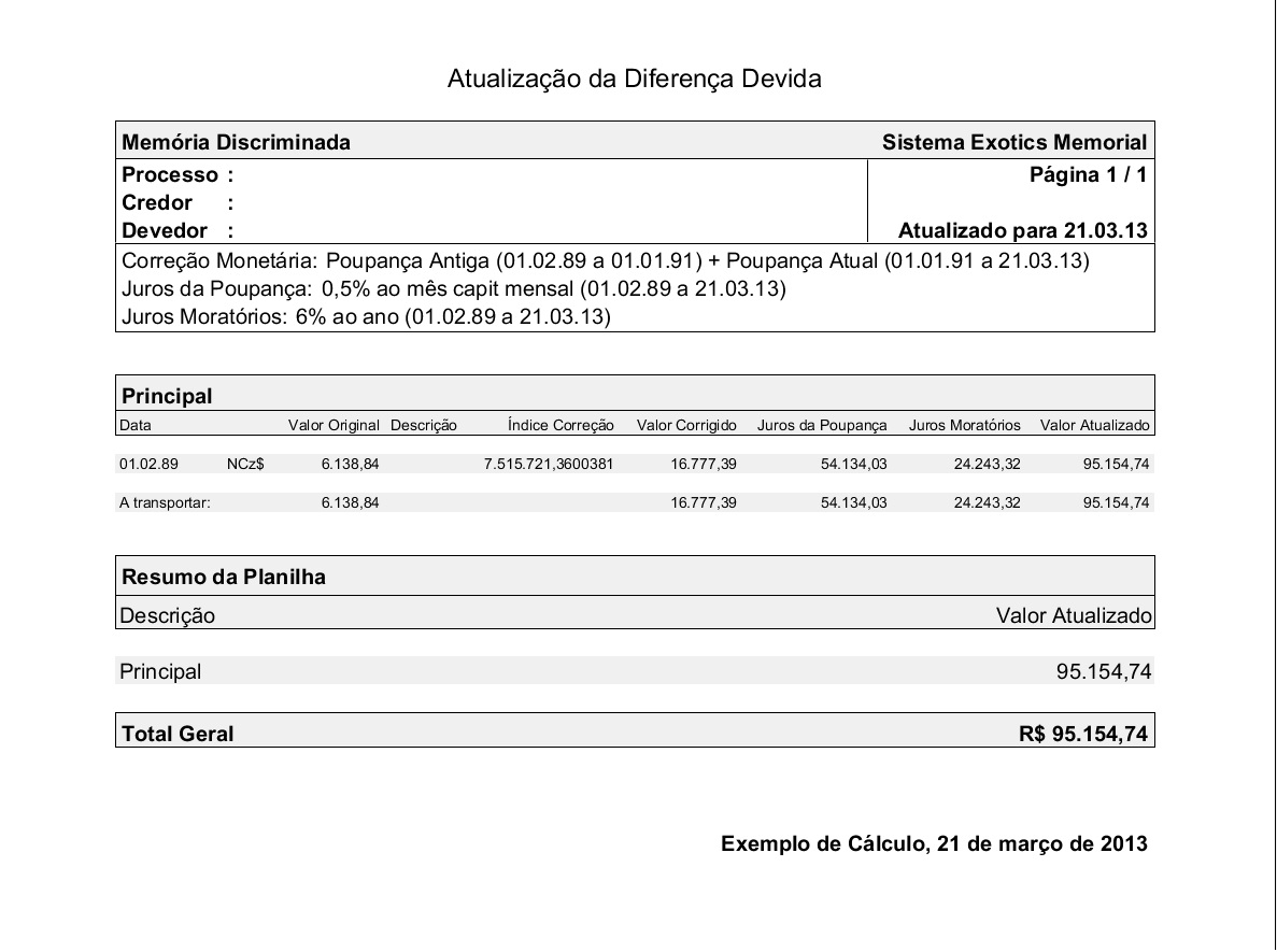 O Memorial 7, sistema da Exotics Informática para cálculos de atualização monetária, possui todos os recursos para revisão e correção dos valores destas poupanças.