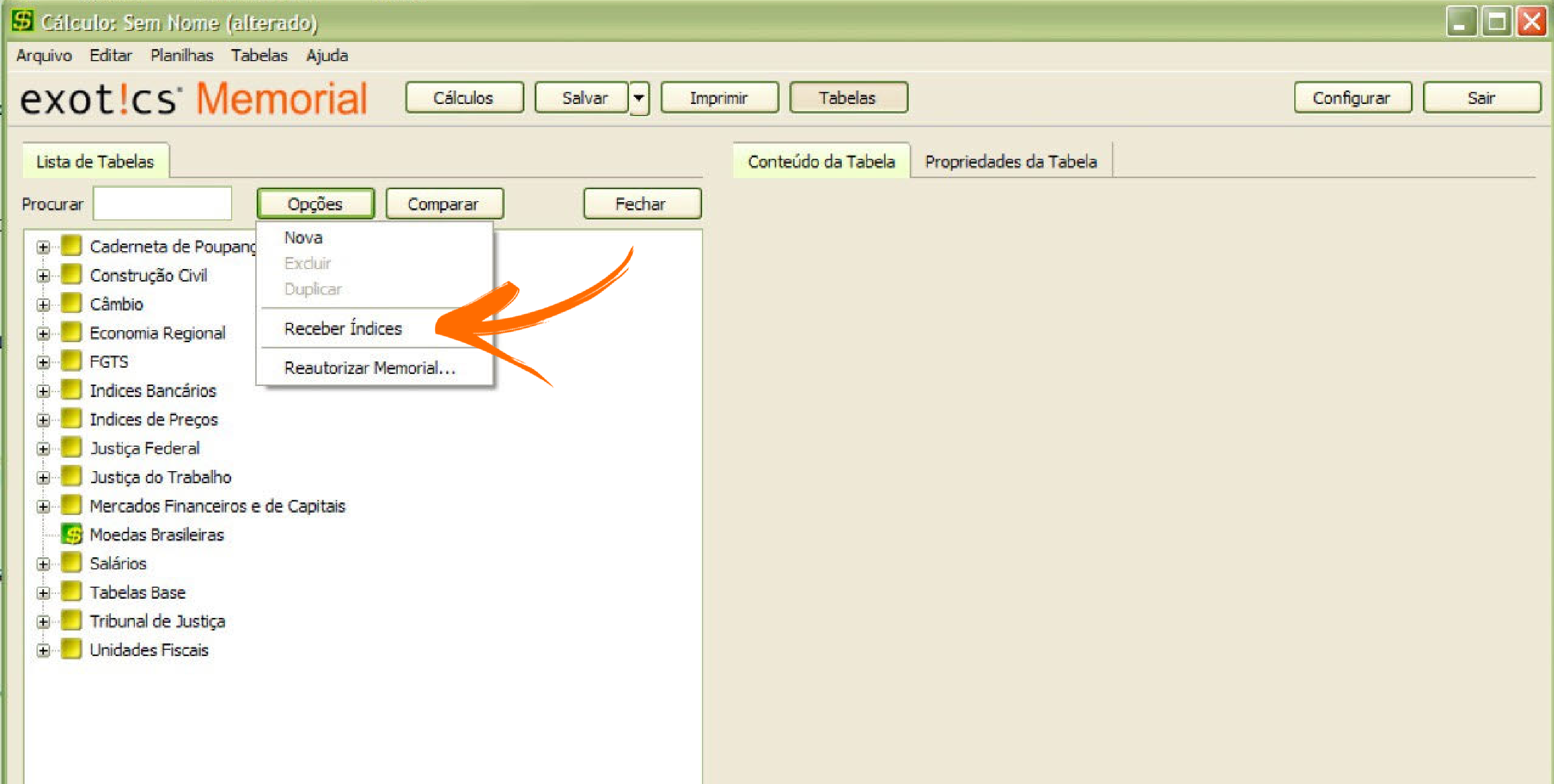 Na versão desktop do sistema, a atualização automática de índices requer o Memorial Índices.