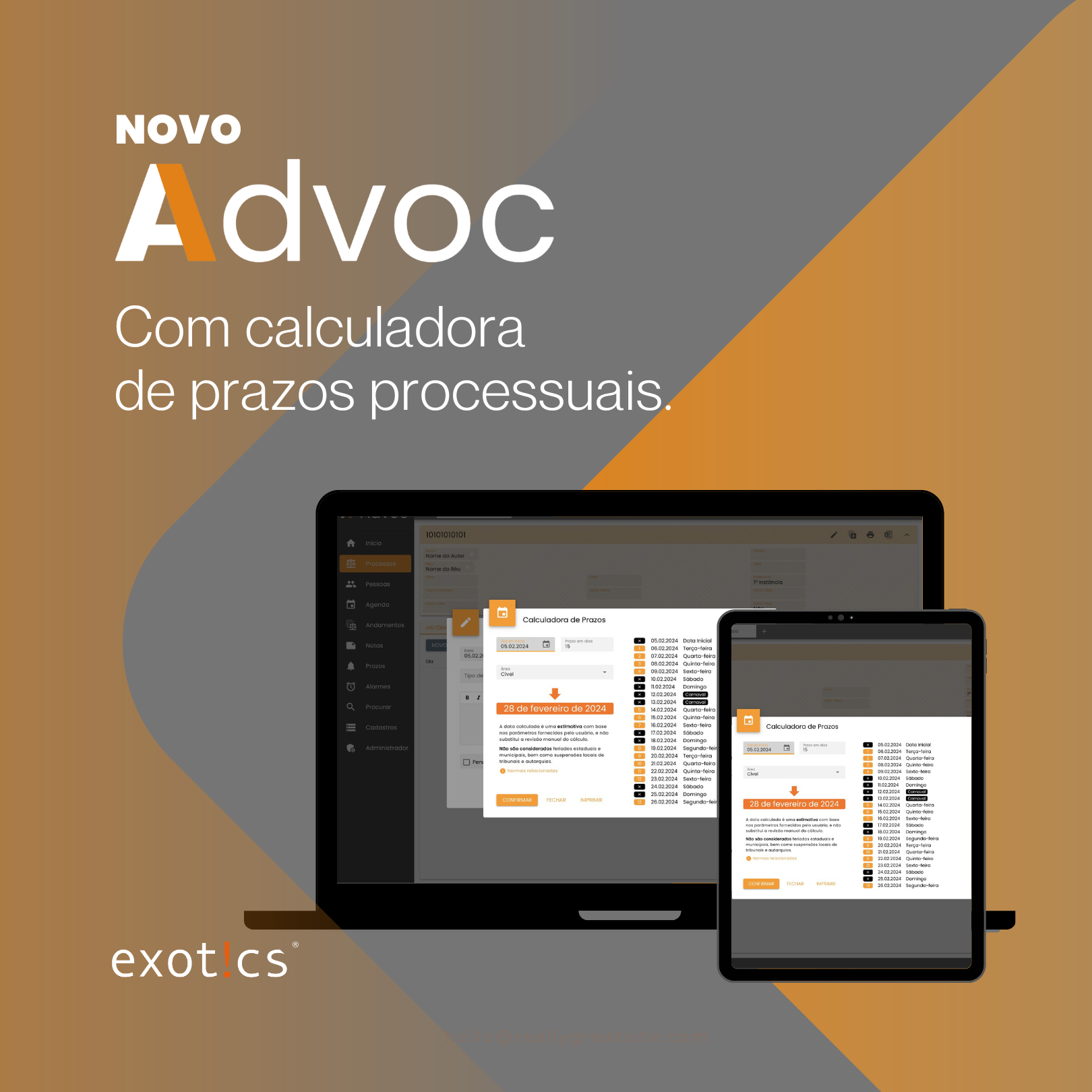 O Advoc, sistema totalmente online para controle e gerenciamento de processos jurídicos, calcula os prazos processuais das áreas Cível, Penal, Trabalhista e Administrativa.