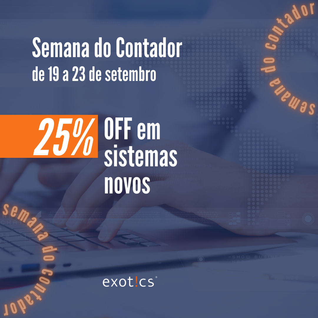 Entre hoje e sexta-feira, de 19 a 23 de setembro, contadores ganham 25% de desconto na compra de novos sistemas** da Exotics Informática.