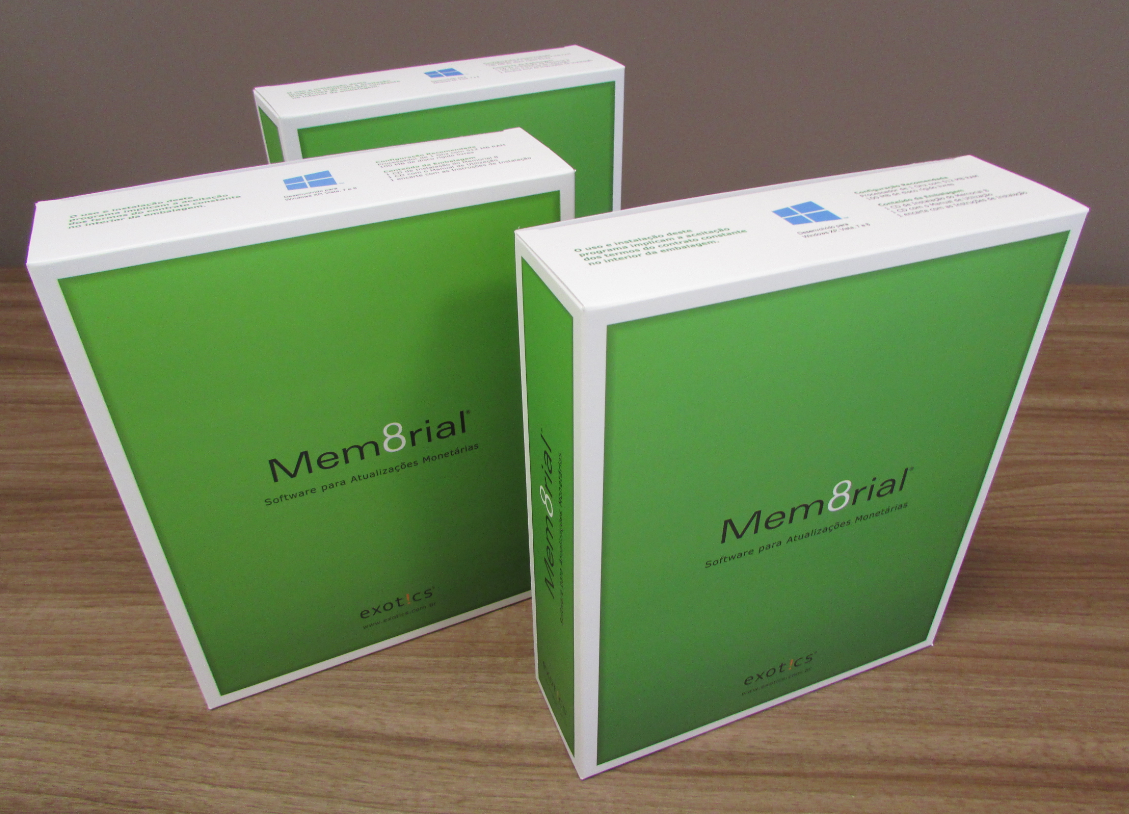 Vejam como ficou a caixa da nova versão do Memorial, o sistema de cálculos da Exotics. A embalagem contém o CD de instalação do programa, CD com manual de utilização e encarte com as instruções de instalação.